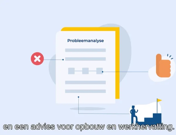 In de probleemanalyse staat onder andere waarom de medewerker (nog) niet kan werken, welke mogelijkheden er zijn voor werkhervatting, de verwachting over herstel en terugkeer naar werk en een advies over aanpassingen, taken of opbouw.